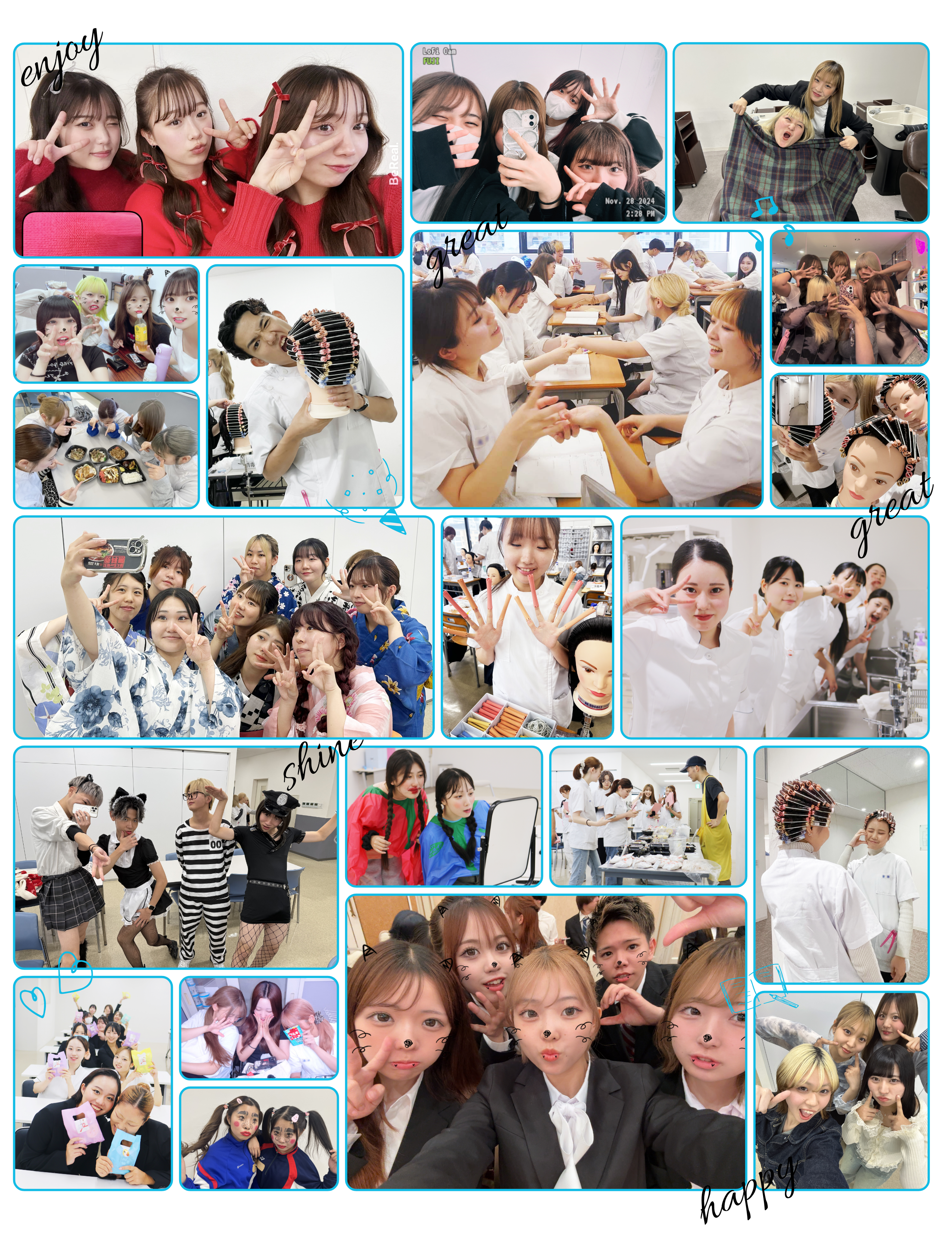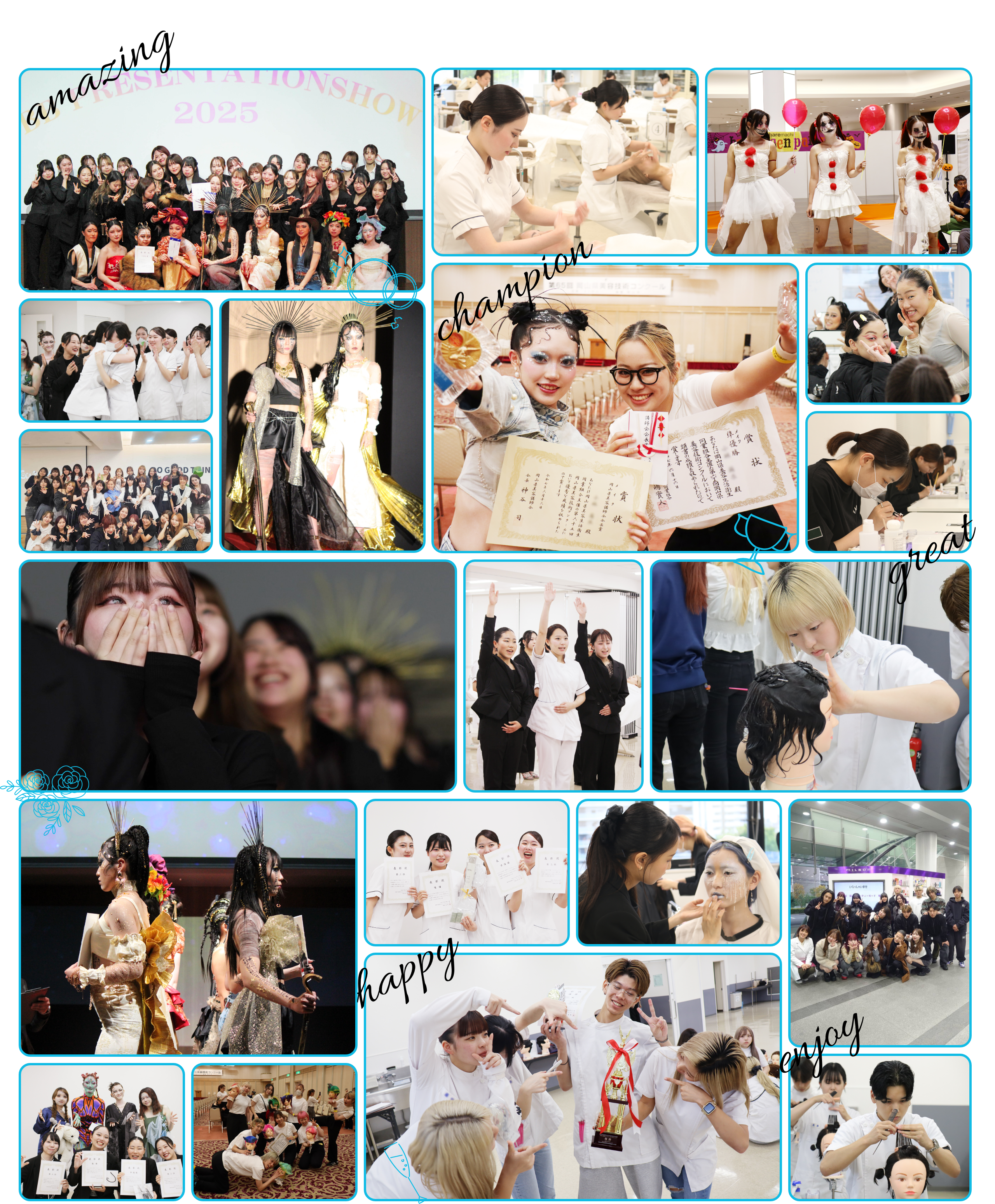 ライバルと本気で競い合い、悔しさと歓喜の涙を流すコンテスト。学びの集大成となるショー、仲間と笑い転げた研修旅行。