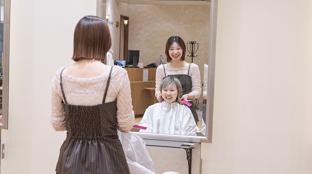 「苦手なことでも諦めずに挑戦し続ける姿勢」は、スタイリストとして働く今、現場での何よりの武器になっています。また、在学中のビジネスマナーの授業で身につけた正しい言葉遣いや礼儀も、お客様や上司と信頼関係を築く上で欠かせない大切な土台です。