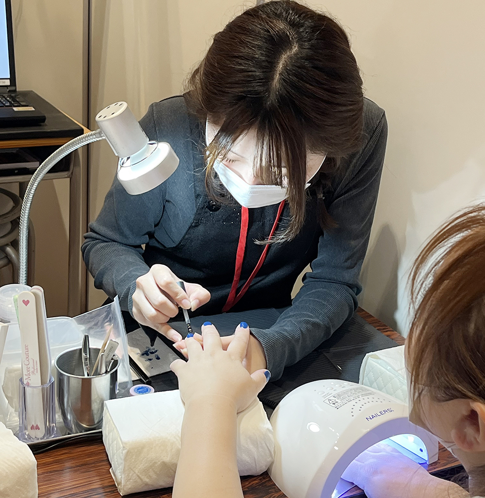 自分で剥がすことができる「ピールオフ」を使用し、普段お仕事の都合でネイルをする機会が無かった方や、今までネイルに挑戦出来なかった方など、たくさんのお客様にお越しいただきました!
