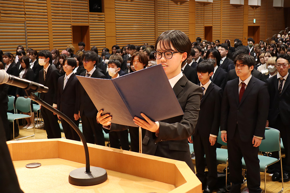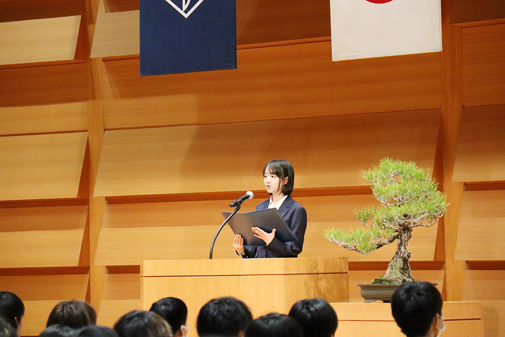 そして新入生代表による「誓いの言葉」では、これから始まる新しい生活への決意が力強く語られ、会場は清々しい緊張感に包まれました。