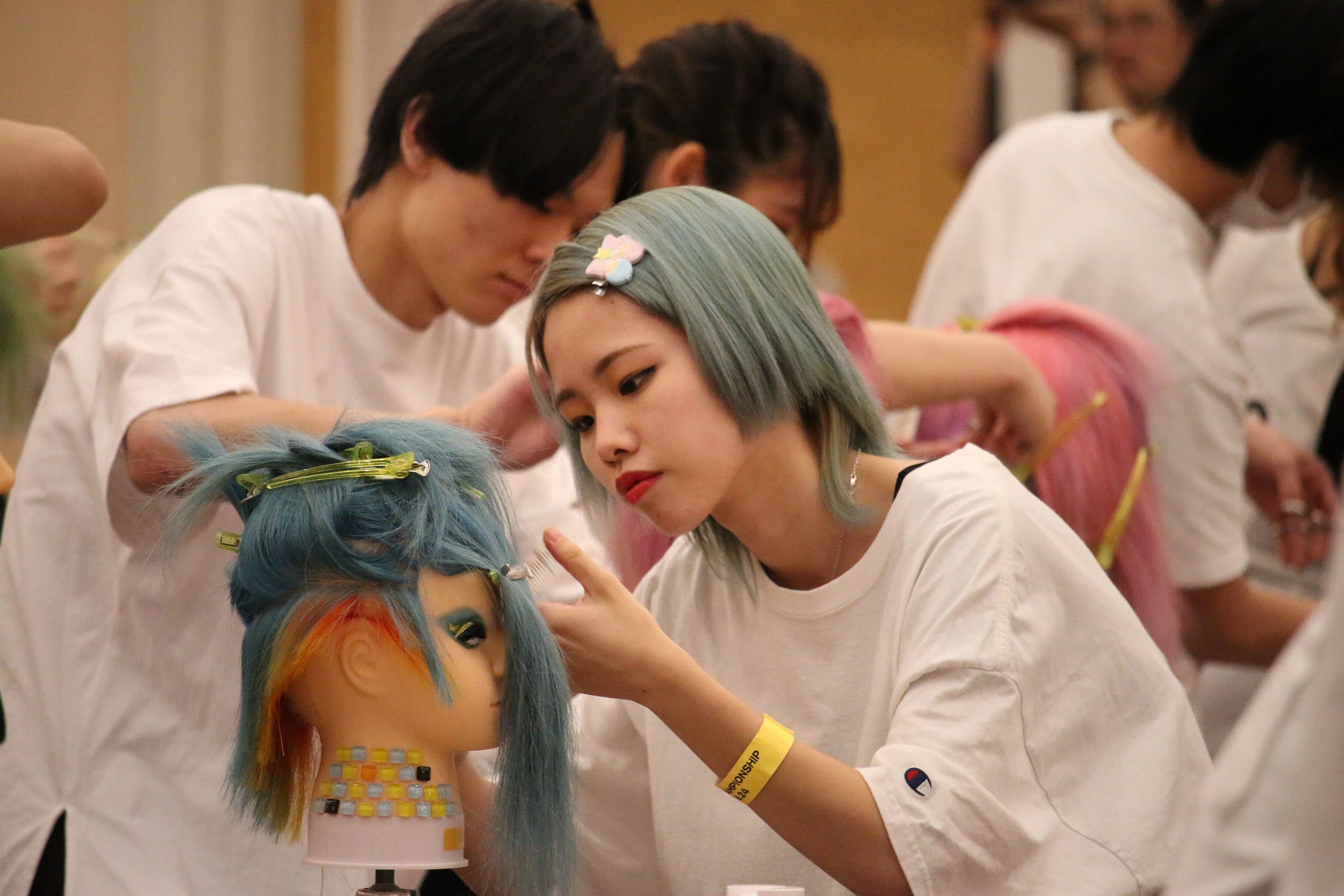 ヘアビューティ学科2年生の有志18名が出場し、全力でぶつかりました!!