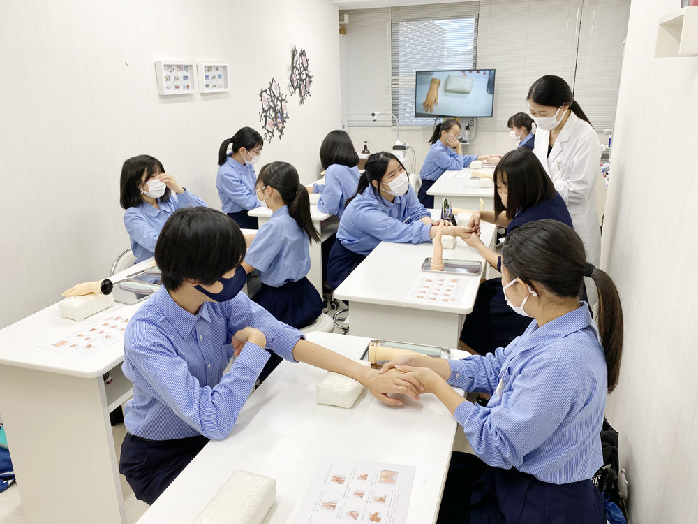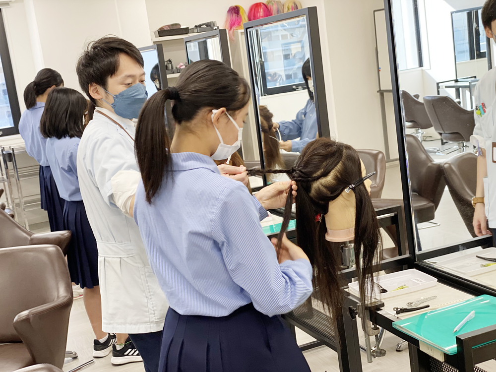 ヘアビューティ学科ではヘアアレンジ、トータルビューティ学科ではハンドマッサージやネイルを体験していただき、美容業界のお仕事を楽しく学びました♪