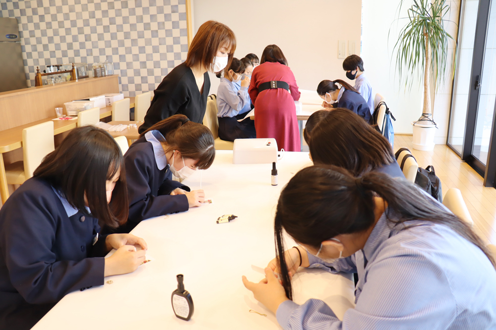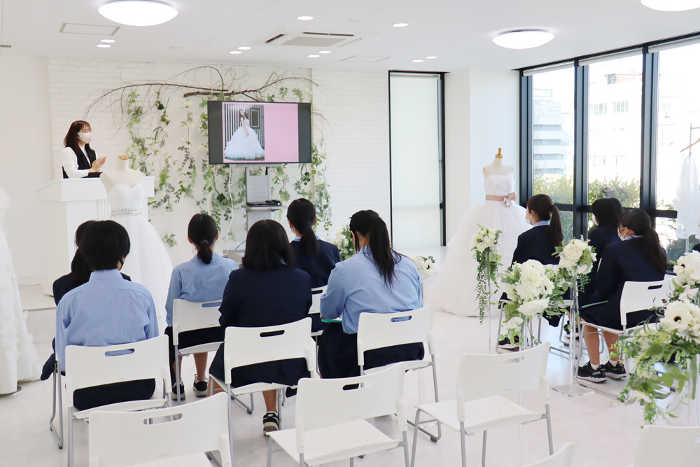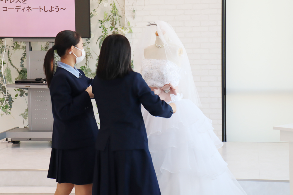 ブライダル学科ではチームでドレスコーディネートに挑戦、ファッション学科では雑貨作りに取り組んでいただきました。